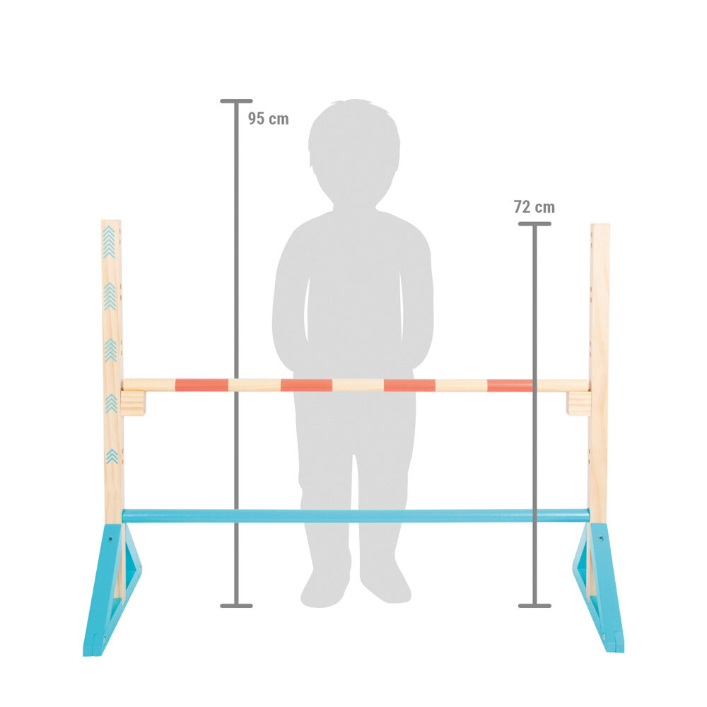 Description Courte: Qui peut sauter le plus haut ? Cette haie de saut réglable pour enfants en bois robuste est parfaite pour jouer au "cheval" avec ou sans cheval bâton, ainsi que pour divers jeux d'exercice dans le jardin. Elle est également idéale pour l'entraînement d'agilité des chiens. La hauteur de saut est variable entre 20 et 70 cm, ce qui en fait un jouet d'extérieur polyvalent.
