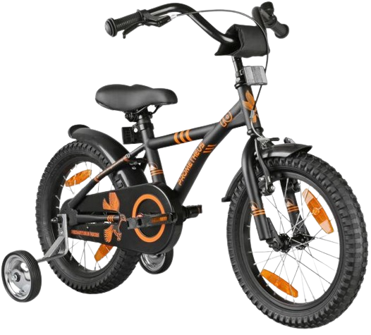 PROMETHEUS 16 inch children's bike from 5 years incl. support wheels and safety package in black matt orange